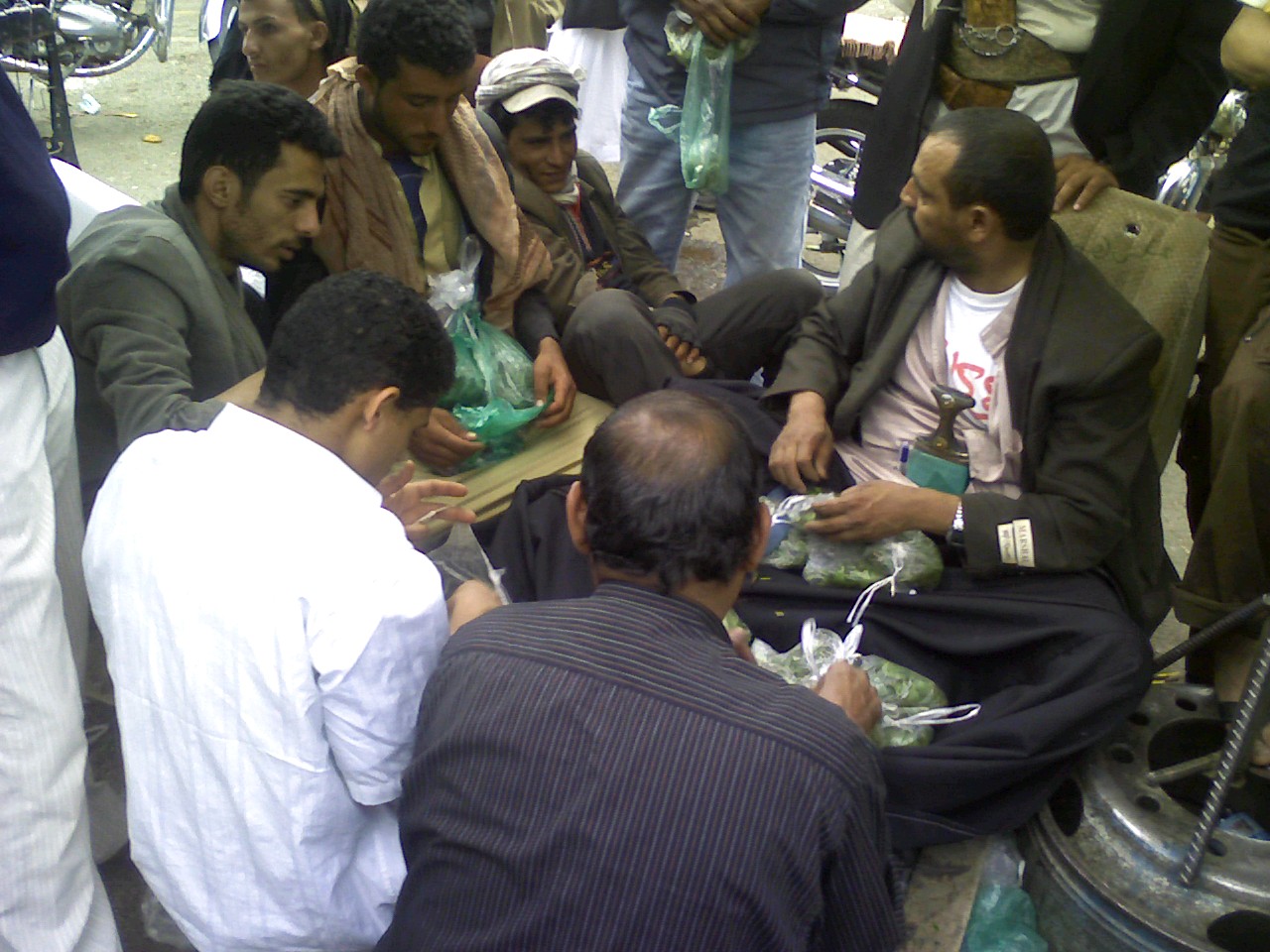 ![]() Traders set up a pitch to sell qat in whatever free spot they can find in the qat market |