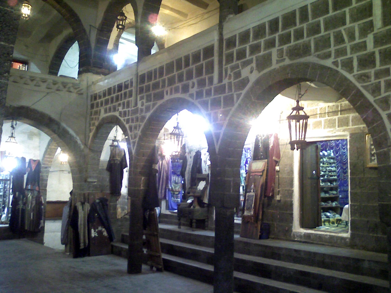 It had been raining heavily all afternoon and continued into the evening when we drove back down to Souk Al Maleh. Despite the weather, the climate was fresh and pleasant although the downpour had left huge puddles everywhere that had to be jumped or skirted. Parking up outside the main entrance, we got out and entered the market through one of the gates. It was fairly crowded and there was water everywhere but little traffic as the roads were very narrow and cobbled with barely enough space for a car to drive through.